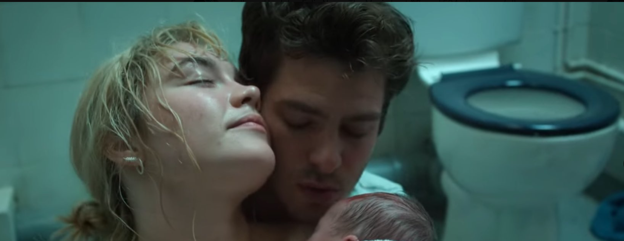 I think what stood out to me most was how well I was able to follow the constant change in which era I was watching. The characters stayed in a relative similar age range, possibly early 20s until late 30s. Andrew Garfield didn’t grow a distinctive beard, goatee, or mustache to tell the audience how old he was like Jack did in This Is Us. There were a couple of easy tells, such as Almut’s apartment being used for the first two eras. Almut being pregnant to divide those. The countryside house for the Cancer Era, as well as any scenes showing Ella. Almut did have some hairstyle changes, significantly her shaved head when she receives the cancer diagnosis. Outside of physical changes, what made it easier to note was the dynamics of the characters with each other. Tobias remains awkward and nerdy throughout the film, however he is smitten in Dating, calm during Pregnancy, and at his end throughout Cancer. He showed a distinct but subtle difference.